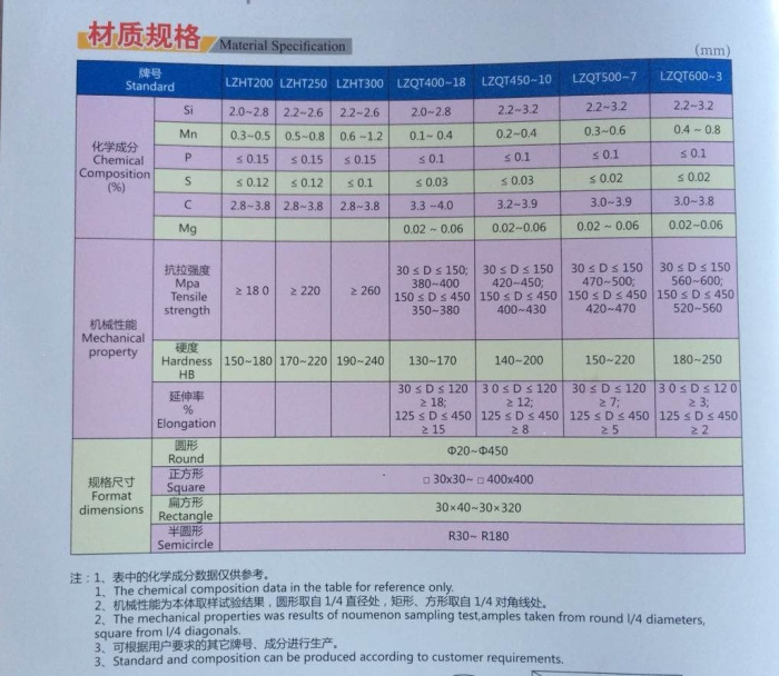 化學(xué)成分:C:3.0~3.6 S:≤0.12 P:<0.15 Mn:0.6~1.0 Si:1.4~2.0